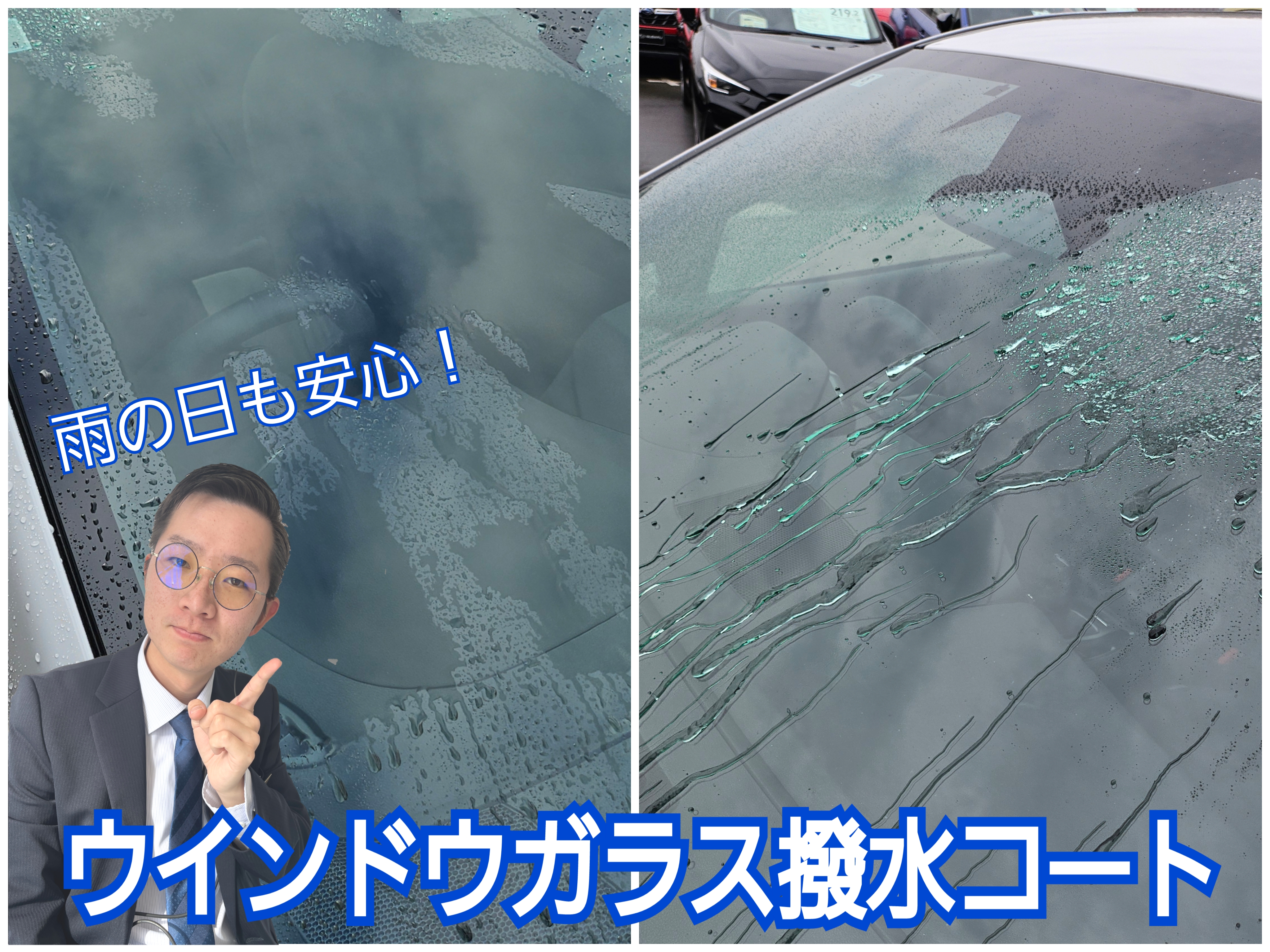 雨の日も快適に!ガラス撥水!