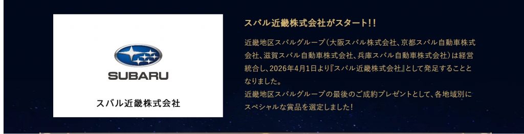 スバル近畿株式会社となります![]()