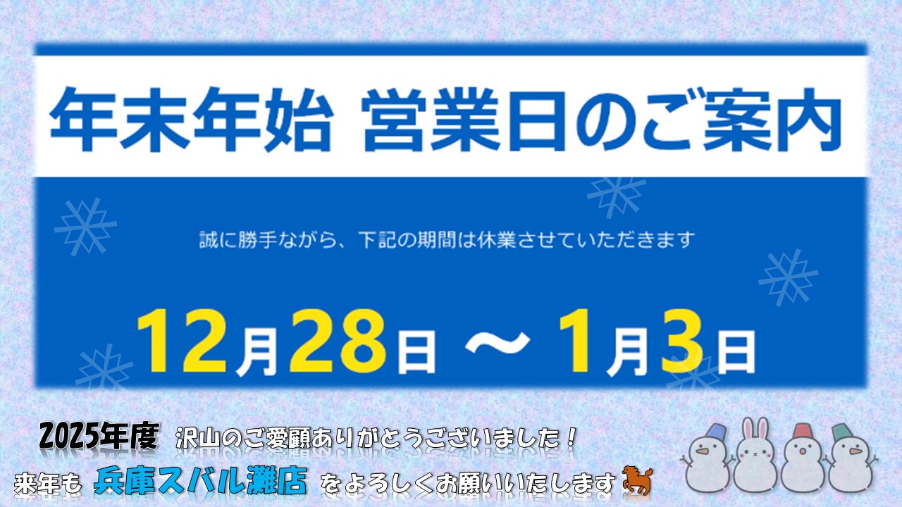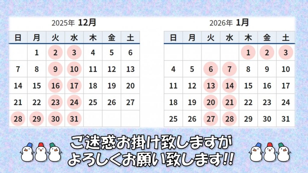 年内営業は12/27まで!2025年度有難うございました❅
