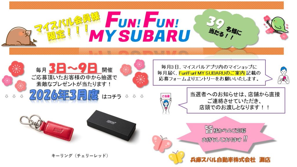 「FUN! FUN! MY SUBARU」がはじまりますっ![]()