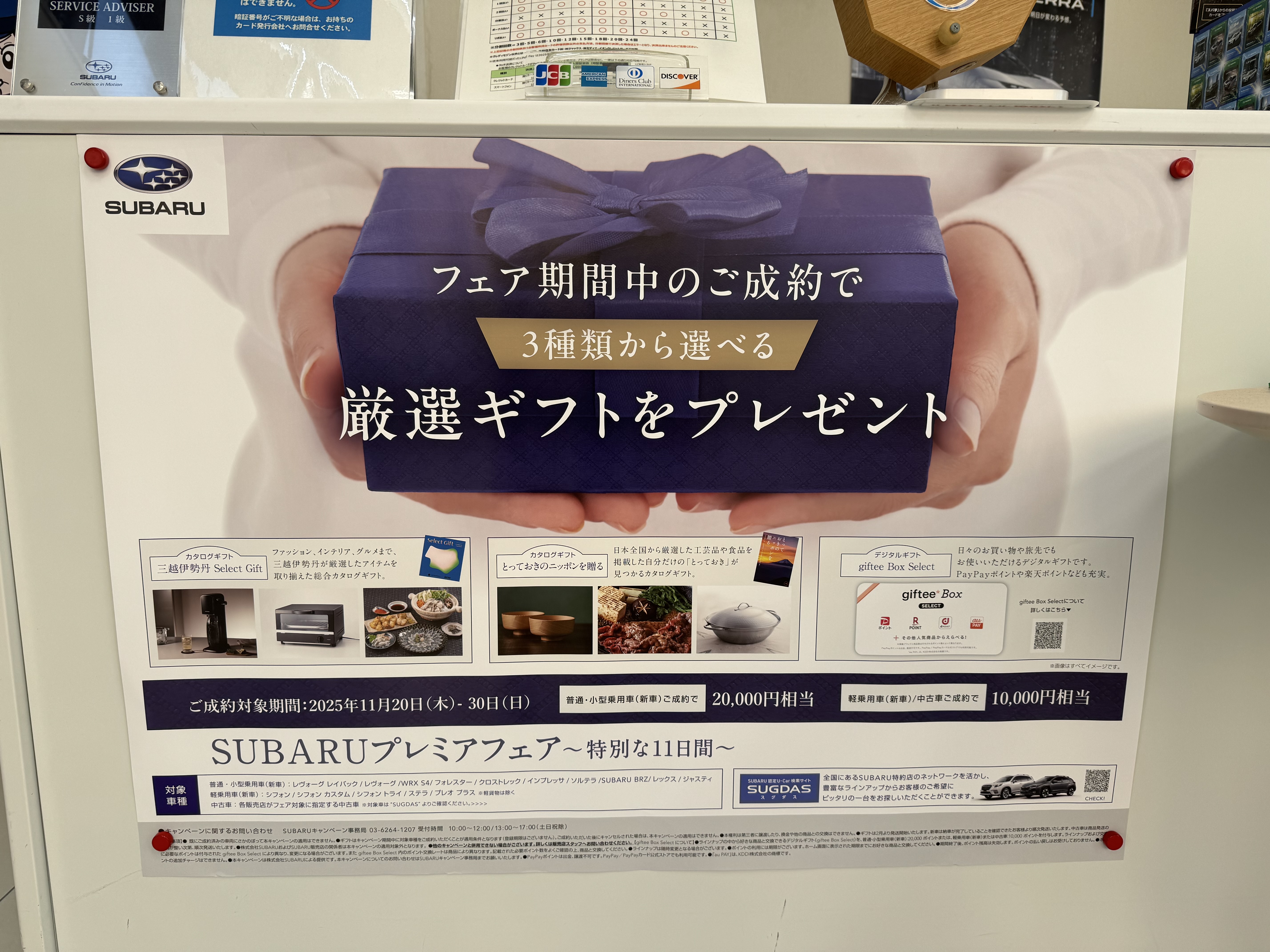 期間中にスバル車ご成約されますと素敵なカタログギフト二種とデジタルギフトをどれかおひとつをお選びいただいてプレゼントさせて頂きます!!