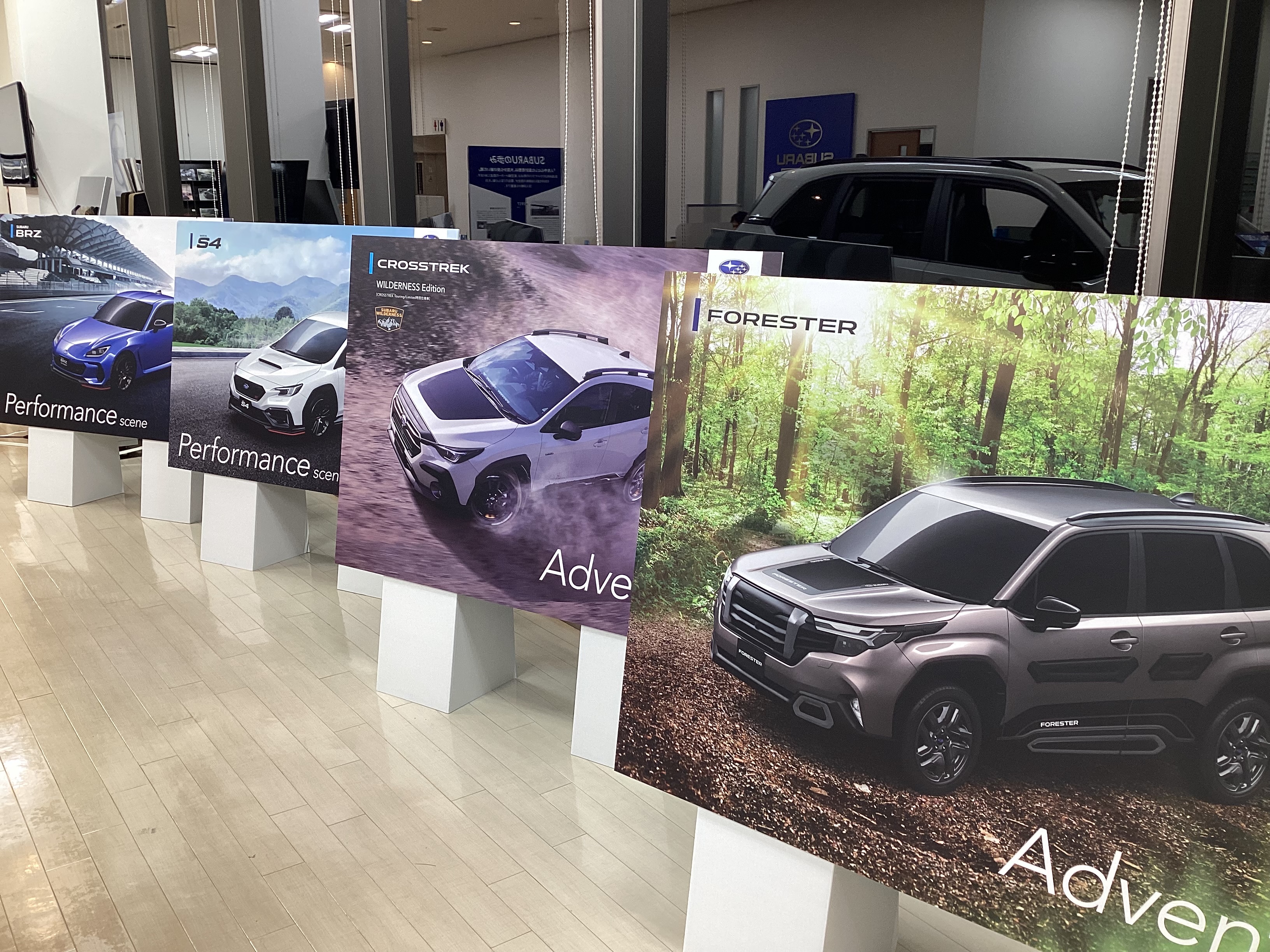 スバル自慢の自動車をかっこよく展示しております!!