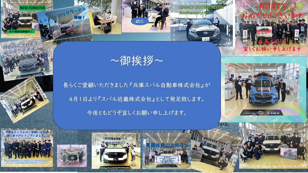御挨拶~4月1日より『スバル近畿へ』~